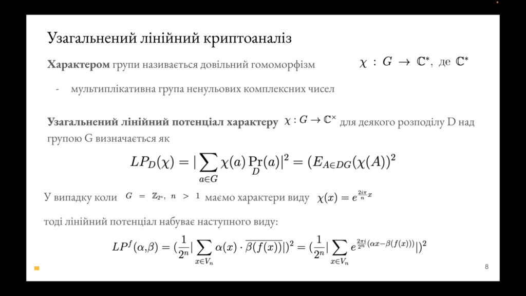- Тафтай Анастасію (Алгоритм оцінювання стійкості небінарних SP-мереж до узагальненого лінійного криптоаналізу, керівник – к.т.н. Яковлєв С.В.),